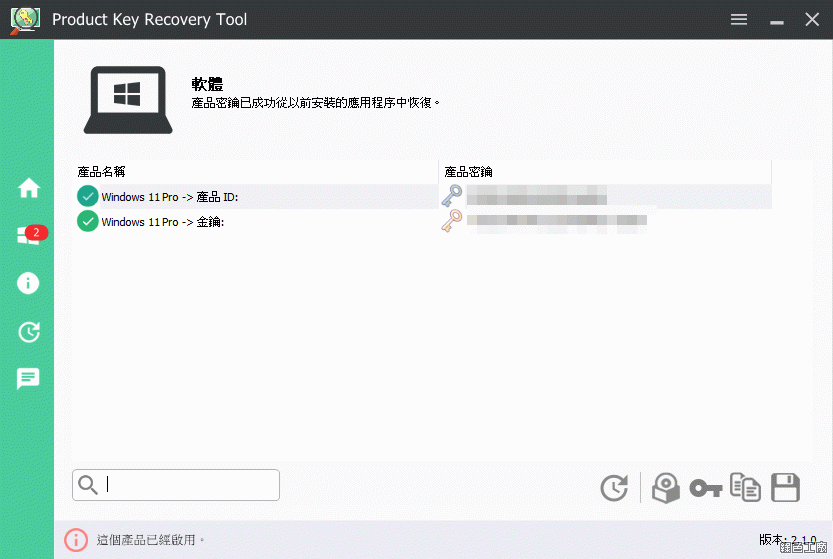 限時免費 Product Key Recovery Tool 2.1.0 軟體序號探測器