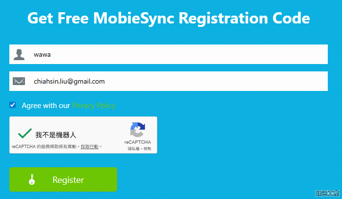 △ 進入活動頁面之後輸入名稱信箱,打勾之後點選 Register。