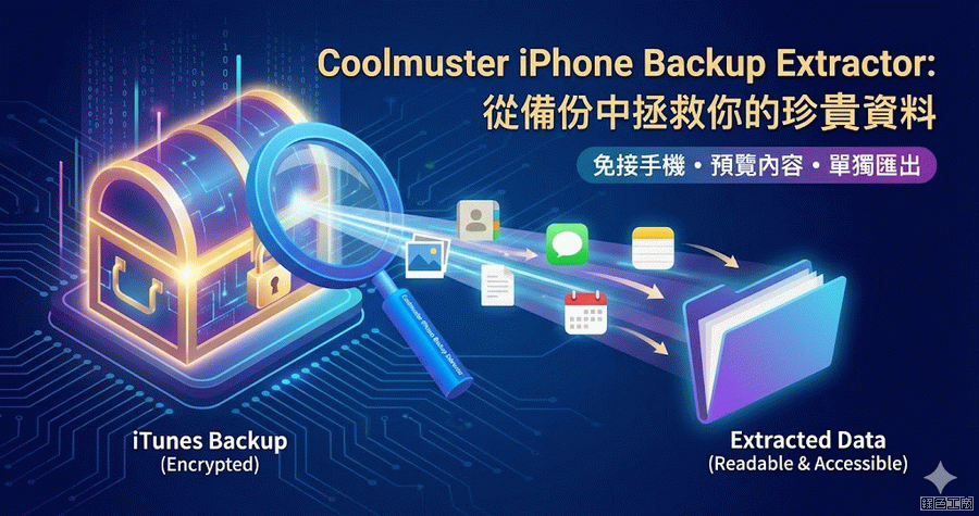 限時免費 Coolmuster iPhone Backup Extractor 3.5.27 備份資料匯出 iTunes,弄丟 iPhone 情況下也能還原資料