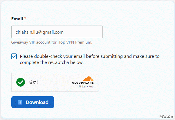 進入活動頁面之後找到以上輸入框,輸入自己的信箱之後點選 Download 繼續。