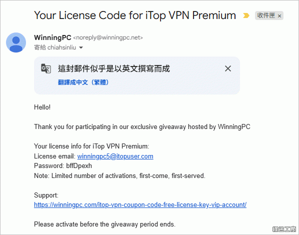 限時免費活動頁面:https://winningpc.com/itop-vpn-coupon-code-free-license-key-vip-account/