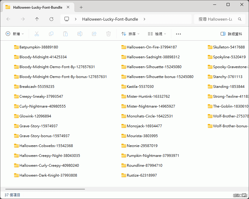 解壓縮後可以看到一個一個字型資料夾,接著教大家如何快速的安裝。