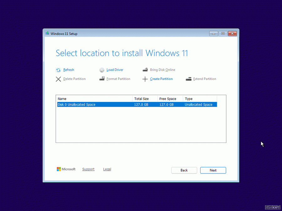 選擇要安裝的硬碟,基本上 128GB 就足夠安裝囉!