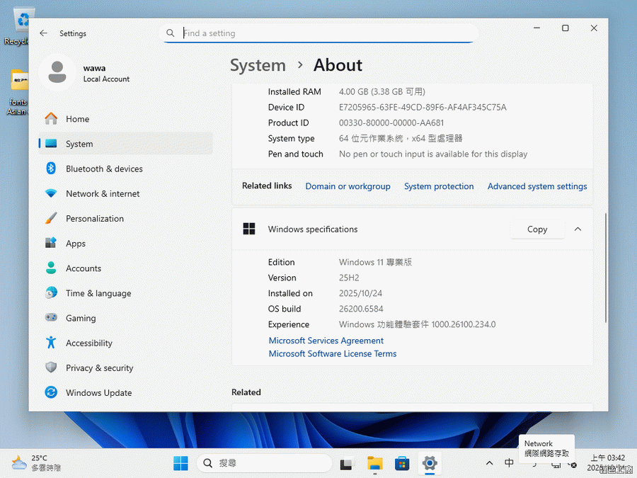 感覺就是真的很精簡的 Windows 11 啊!如果本身用電腦就沒有要太多基本的系統功能,tiny11 25H2 或許是很好的選擇,像我自己雖然也是使用 Windows 11,不過大多操作都在瀏覽器啊!