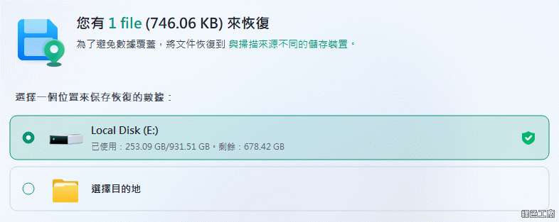 △ 還原時要特別注意,不能將檔案還原到正在救援的硬碟,必須還原到其他的硬碟空間。整體檔案救援就如此簡單!