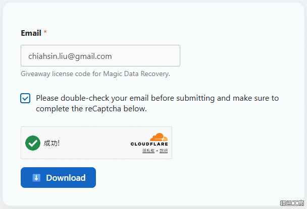 △ 進入活動頁面之後,輸入自己的信箱之後點選 Download 就可以去收信取得這次的活動序號。免安裝版可以到文末下載。