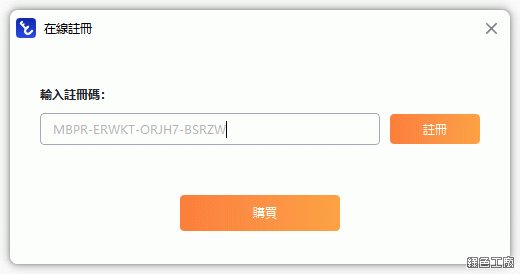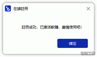 將活動所取得的序號填入,點選註冊啟動。