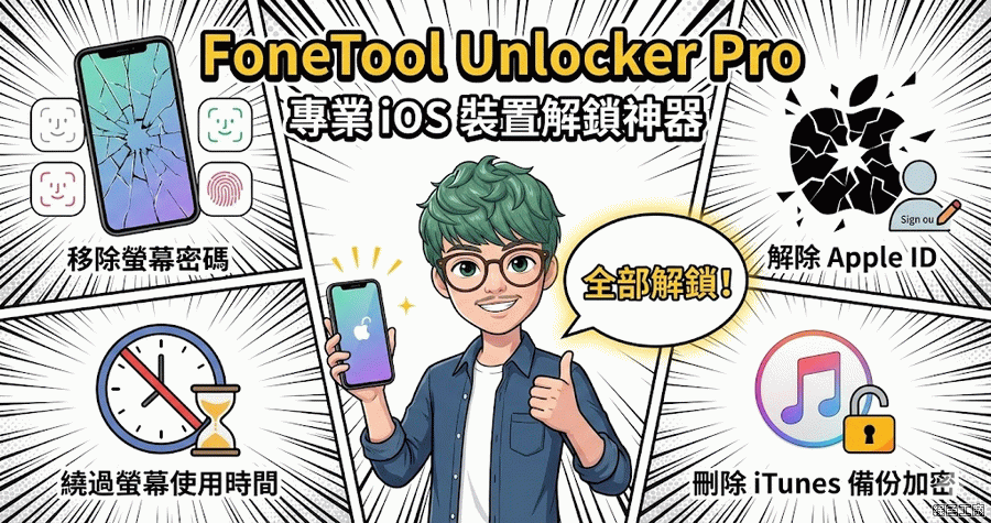手機改完密碼就立刻忘記密碼!這經驗你有過嗎?坦白說我還真的有!那你是否曾遇到過 iPhone 忘記密碼、Apple ID 被鎖定,或是不知道螢幕使用時間密碼記等等,對於 Apple 用戶來說,這些情況可能非常糟糕的。這次跟大家分享的 FoneTool Unlocker Pro 就是解除鎖定限制的專用工具,如果你有需求幫自己解鎖,或是幫他人解鎖,那這款工具必定要收下的唷!