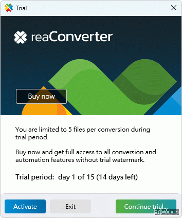 限時免費標準免安裝:(執行 reaconverter.exe)