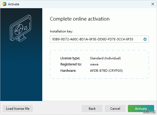 △ 開啟軟體後會先進入註冊畫面,點選 Activate 啟動。