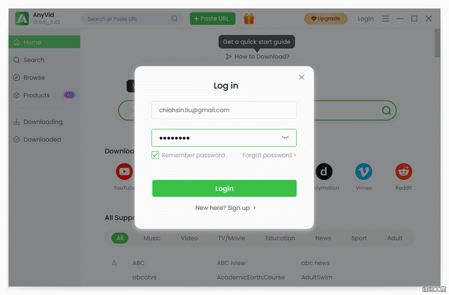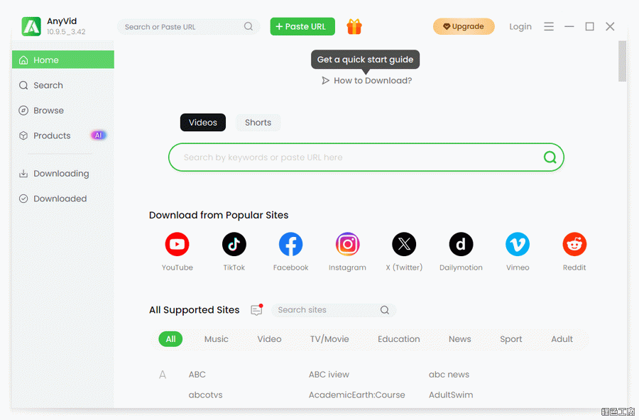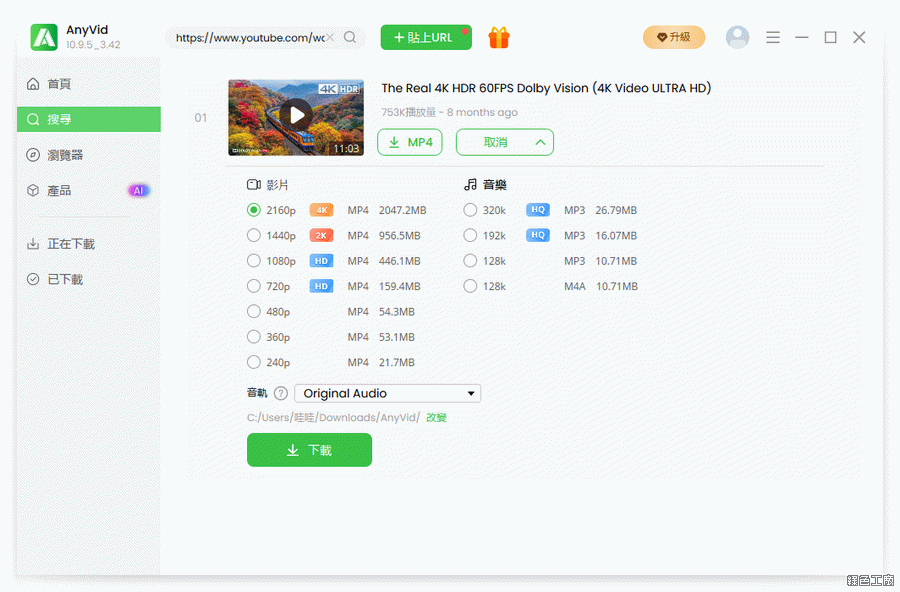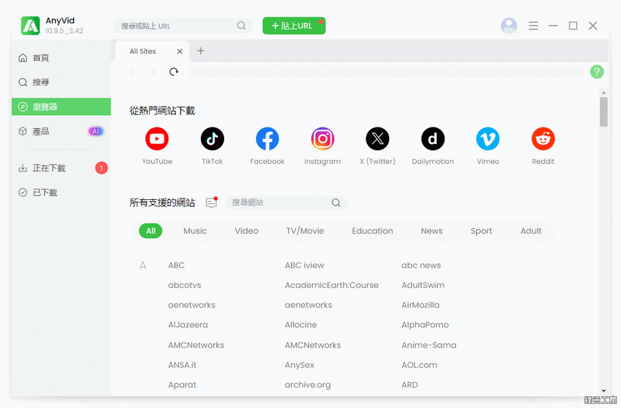 AnyVid 具備有線上影音下載功能,支援超過 1000 個影音網站,還兼具影音轉檔功能,有下載有賺到囉!