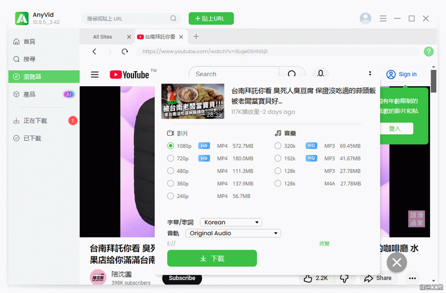 △ 之後就會跳出可以下載的格式等等,點選後就能開始下載囉!