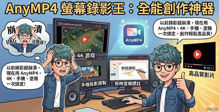 螢幕錄影與錄音的需求提升了,大家也在找合適的工具,AnyMP4 Screen Recorder 是我目前使用起來最順眼的一款,介面風格有專業感,雖然缺乏繁體中文語系,但是使用上並沒有太多複雜的設定,相信大家很快就可以上手,這款工具現在正在限時免費當中,限免的版本支援免安裝使用,有需求的朋友請記得到文末下載檔案,立刻開始使用高質量的螢幕錄影錄音軟體。